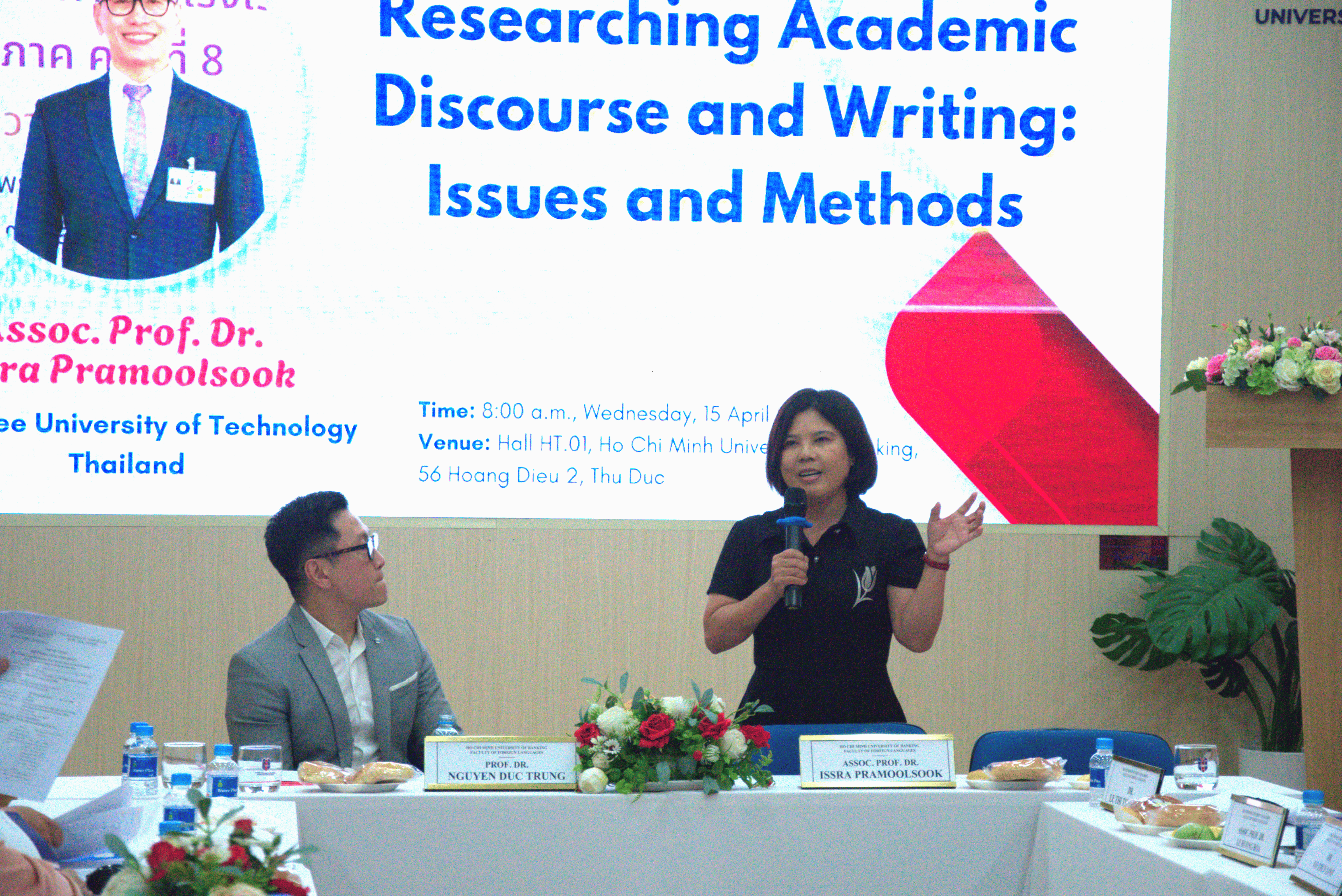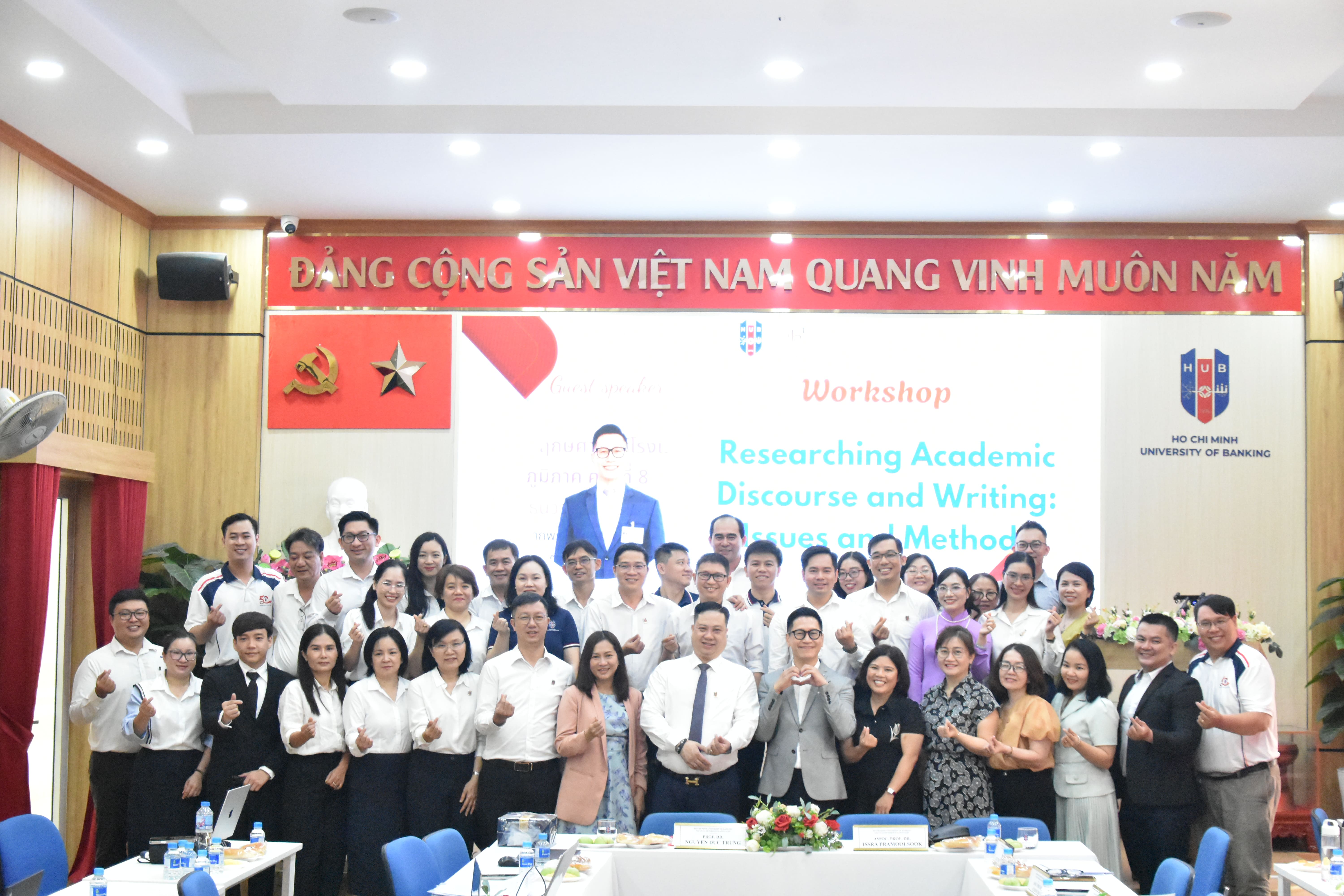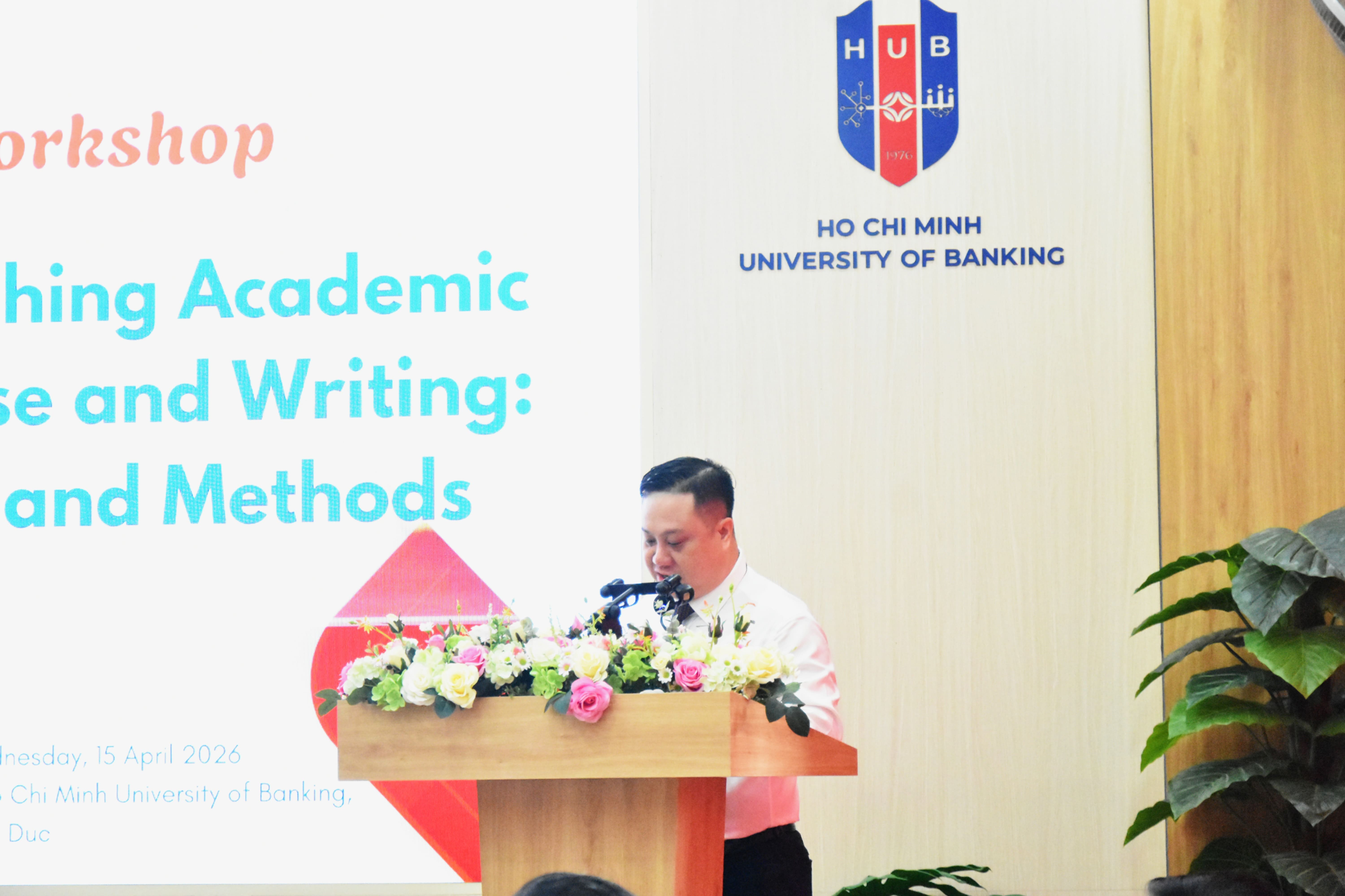Sáng ngày 5 tháng 11 năm 2025, tại Hội trường HT01 – Cơ sở 56 Hoàng Diệu 2, Thủ Đức, Khoa Ngoại ngữ – Trường Đại học Ngân hàng TP. Hồ Chí Minh (HUB) đã tổ chức Tọa đàm học thuật với chủ đề “Researching Academic Discourse and Writing: Issues and Methods”, thu hút sự tham gia của đông đảo giảng viên, học viên cao học và sinh viên ngành Ngôn ngữ Anh.